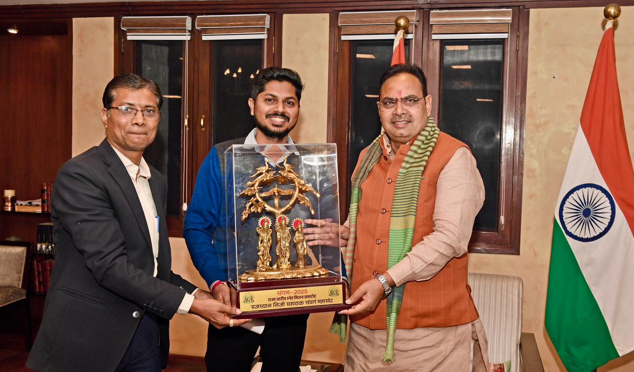 बीकानेर, 23 जनवरी 2026। राज निजी सहायक संवर्ग महासंघ के प्रदेश अध्यक्ष गिरीश जैन एवं प्रदेश महामंत्री पृथ्वी सिंह राठौड़ ने अयोध्या राम मन्दिर प्राण प्रतिष्ठा की द्वितीय वर्षगांठ पर मुख्यमंत्री भजनलाल शर्मा को राम दरबार भेंट कर गत 2 वर्ष से राजस्थान में राम राज्य कायम करने की दिशा में अपराध मुक्त राजस्थान बनाने, युवाओं के लिए एक लाख से अधिक भर्तियों का कैलेंडर जारी करने, कर्मचारी कल्याण बोर्ड के माध्यम से कर्मचारियों की समस्याओं का निस्तारण करने, महिला सशक्तिकरण की दिशा में पालनहार योजना, लाडो प्रोत्साहन योजना के अलावा पेपर लीक रोकथाम कानून के माध्यम से युवाओं के भविष्य को संवारने का जो कार्य किया है उसके लिए धन्यवाद ज्ञापित किया।