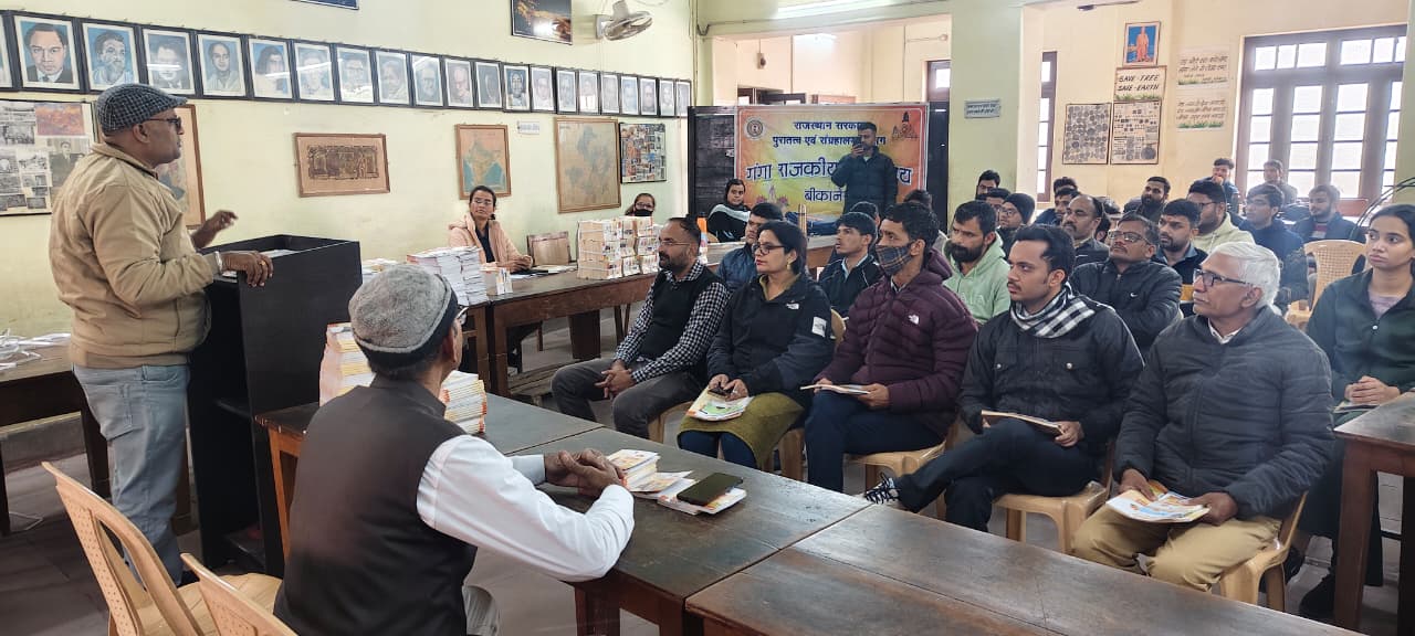 बीकानेर, 1 जनवरी। राज्य सरकार के दो वर्ष के कार्यकाल की उपलब्धियों की जानकारी देने और जनसंपर्क विभाग द्वारा प्रकाशित साहित्य को युवाओं तक पहुंचाने का अभियान गुरुवार को शुरू हुआ। पहले दिन राजकीय सार्वजनिक मंडल पुस्तकालय में विभाग द्वारा प्रकाशित विभिन्न प्रकार के साहित्य युवाओं को दिए गए। जनसंपर्क विभाग के उपनिदेशक हरि शंकर आचार्य ने बताया कि मुख्यमंत्री भजनलाल शर्मा के नेतृत्व में प्रदेश सरकार ने विभिन्न वर्गों के लिए ऐतिहासिक कार्य किए हैं। युवा कल्याण राज्य सरकार की सर्वोच्च प्राथमिकताओं में है। उन्होंने बताया कि अब तक 92 हजार से अधिक युवाओं को सरकारी नौकरी के नियुक्ति पत्र दिए जा चुके हैं। डेढ़ लाख से अधिक नियुक्तियों की प्रक्रिया प्रगतिरत है। उन्होंने रोज़गार विभाग द्वारा आयोजित किए जा रहे रोजगार सहायता शिविरों, मुख्यमंत्री युवा संबल योजना सहित राज्य सरकार की विभिन्न योजनाओं के बारे में बताया। उन्होंने विभाग की मासिक पत्रिका सुजस और सुजस बुलेटिन की जानकारी दी। साथ ही सूचनाओं के प्रेषण के लिए निचले ग्राम पंचायत और वार्ड स्तर तक बनाए गए व्हाट्सएप ग्रुप्स की जानकारी दी। पुस्तकालयाध्यक्ष विमल कुमार शर्मा ने पुस्तकालय की गतिविधियों के बारे में बताया और जनसंपर्क विभाग के साहित्य की प्रतियोगी परीक्षाओं दी दृष्टि से उपयोगिता के बारे में जानकारी दी। सात दिवसीय अभियान के क्रम में शुक्रवार को वेबसोल इंस्टिट्यूट में कार्यक्रम आयोजित किया जाएगा।