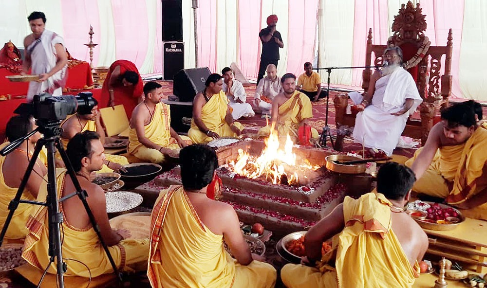 शनिवार काे विशेष महायज्ञ में काशी के विद्वान विप्र पंडिताें ने आहूतियां दीं